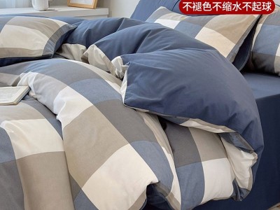 觉先生全棉四件套100%纯棉被套床单人格子被罩学生宿舍三件套床品