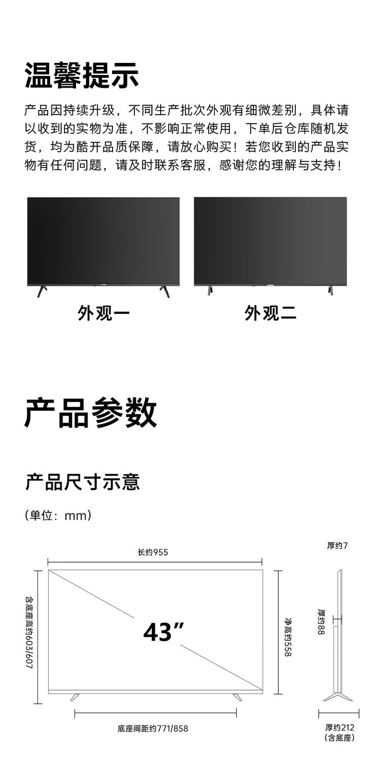 酷开 创维 P31 43英寸电视 全高清 超薄 金属全面屏 智能平板游戏液晶电视机以旧换新43P31