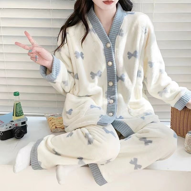 清仓睡衣女珊瑚绒两件套爆款可外穿加厚高级感大码家居服套装长袖图1
