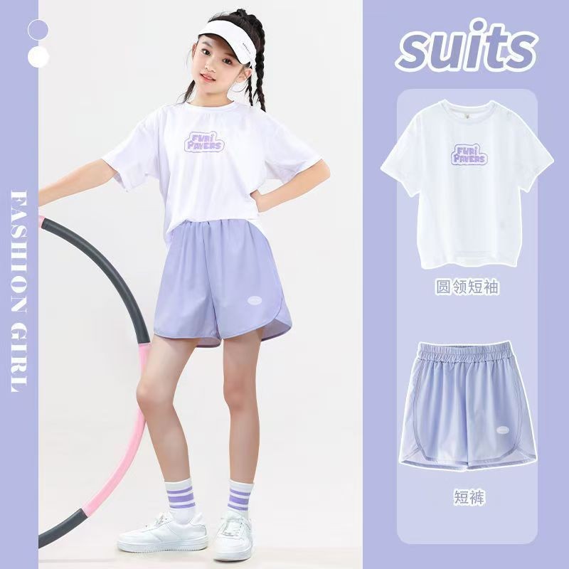 夏季女童套装儿童短袖短裤运动两件装女孩时尚洋气新款户外穿搭风图1