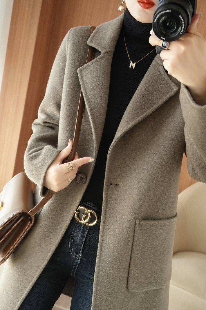 100%纯羊毛双面羊绒大衣女春季加厚新款韩系小个子毛呢子外套修身图1