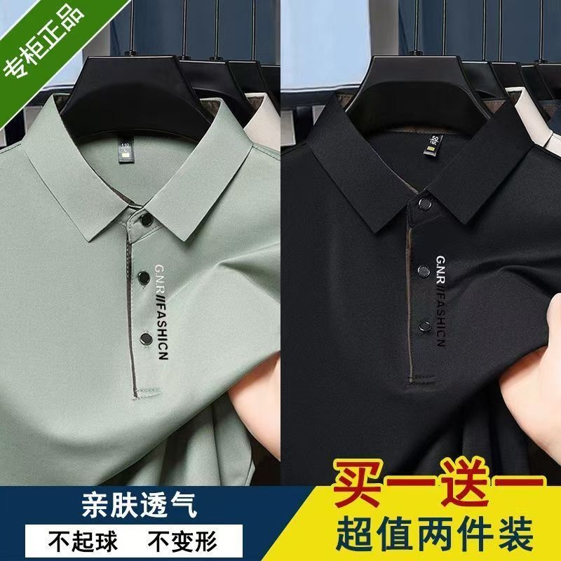 正品夏季新款翻领男士冰丝短袖T恤商务休闲POLO衫纯色上衣男打底图1