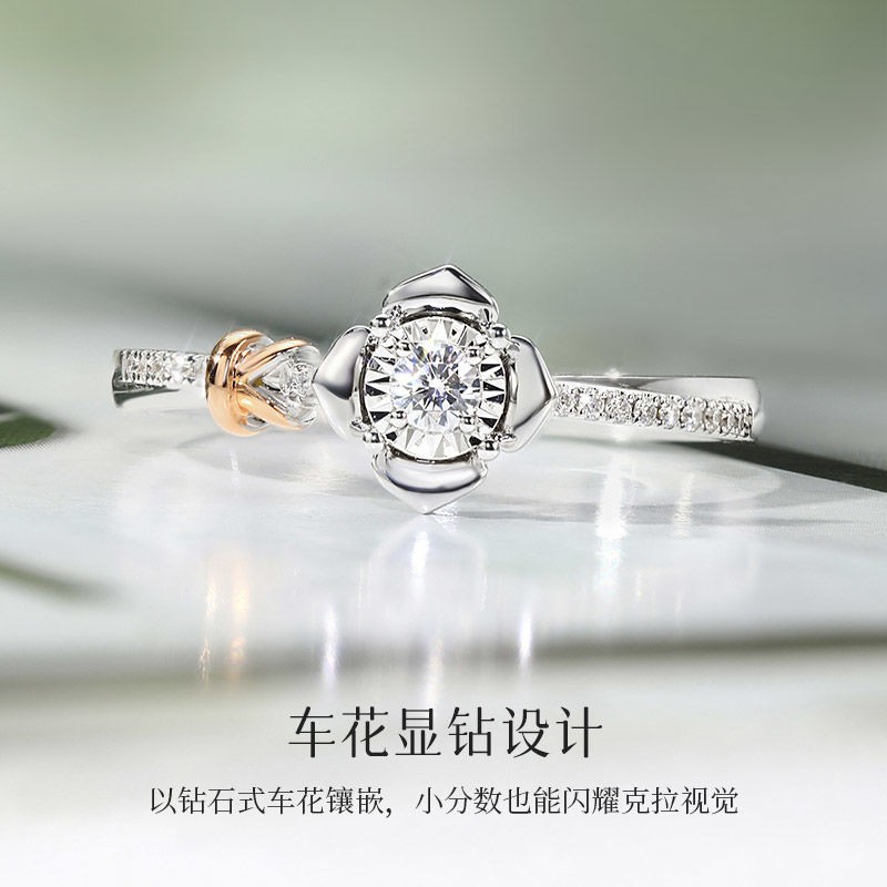 喜钻 18K金钻石戒指车花显设计幸运四叶草婚戒七夕送老婆浪漫礼物图1