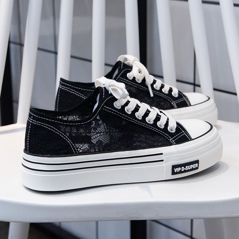 夏季薄款透气蕾丝帆布鞋女2024年新款夏款镂空板鞋网面网鞋小白鞋