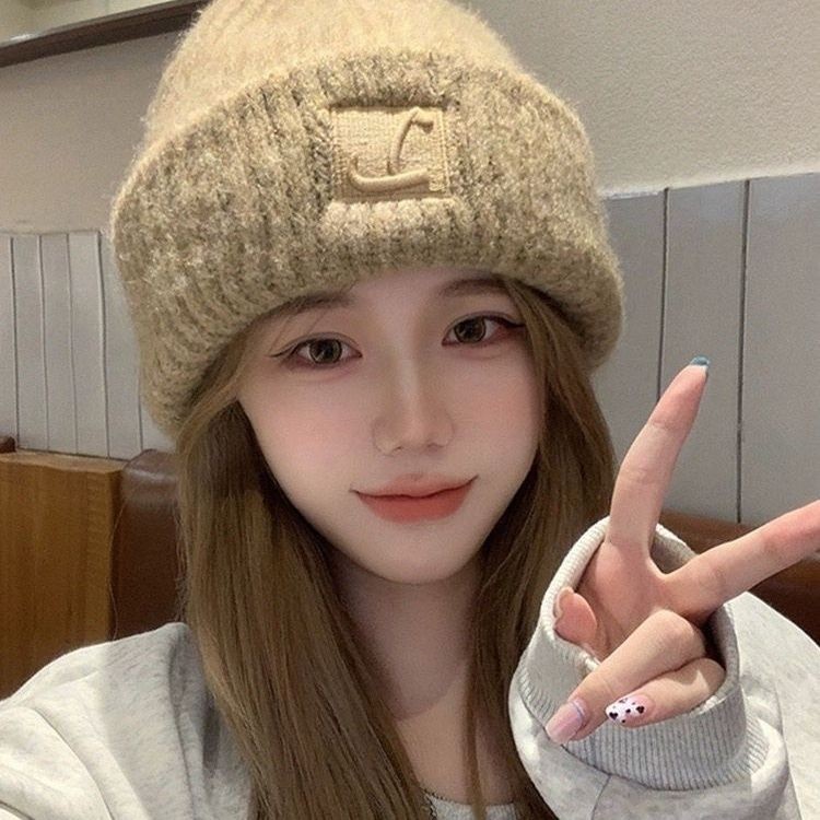新款大头帽子毛线帽子女秋冬季宽松保暖堆堆针织冷帽大脸护耳显脸图1