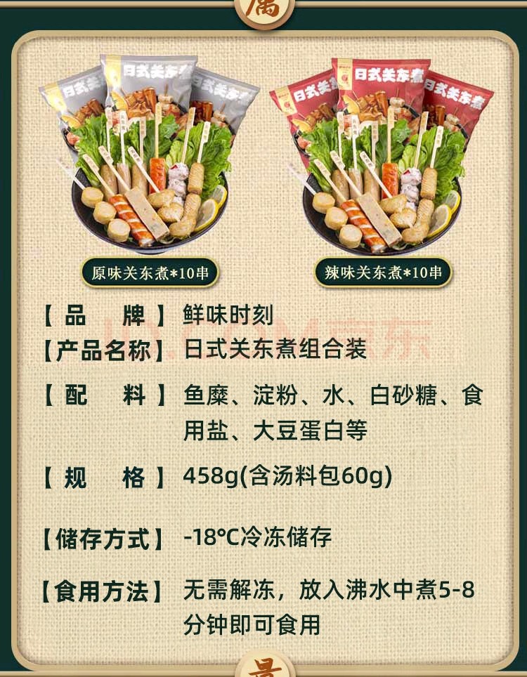鲜味时刻【4件起售】关东煮458g含料包罗森711空气炸锅食材火锅丸子 原味清汤 10串 398g+60g料包