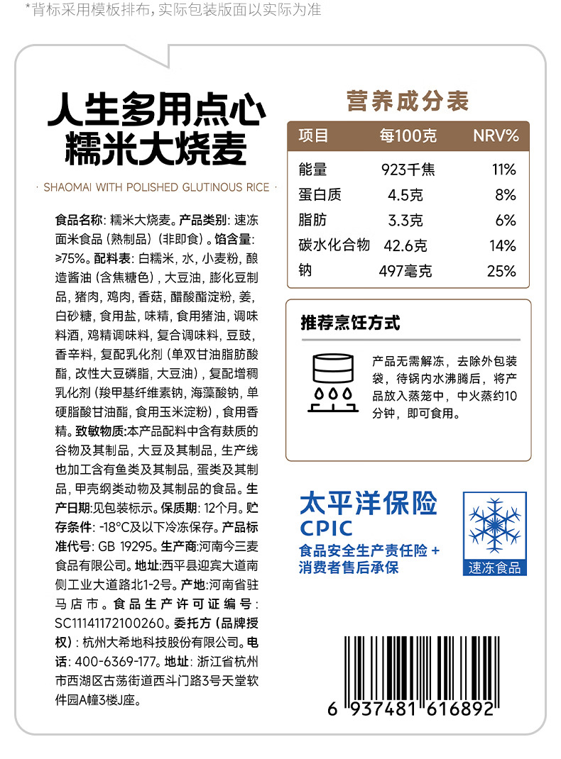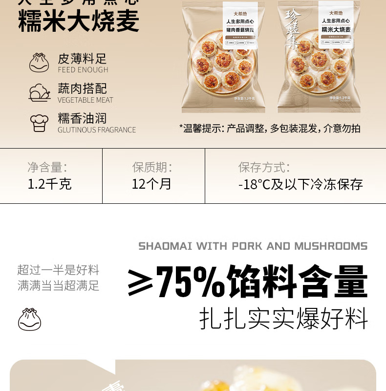 大希地糯米大烧麦 1200g 约24个 家庭面点早餐 加热即食 冷冻半成品