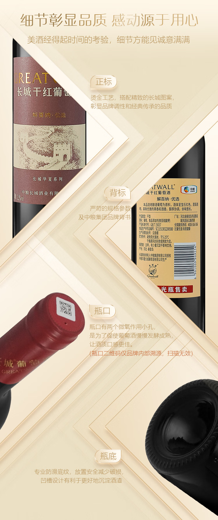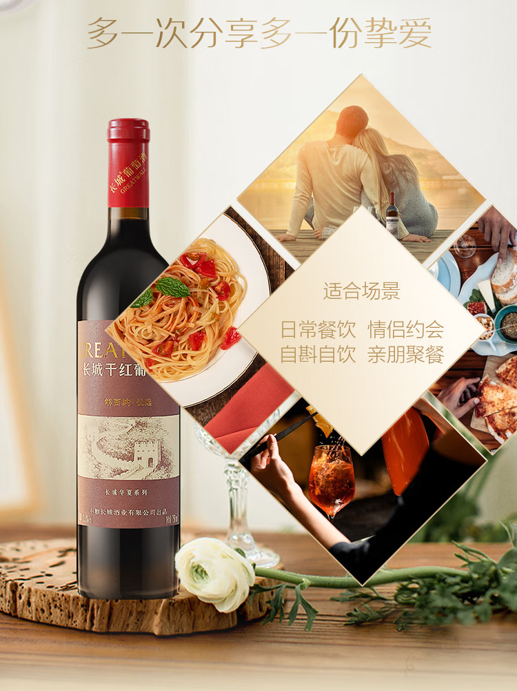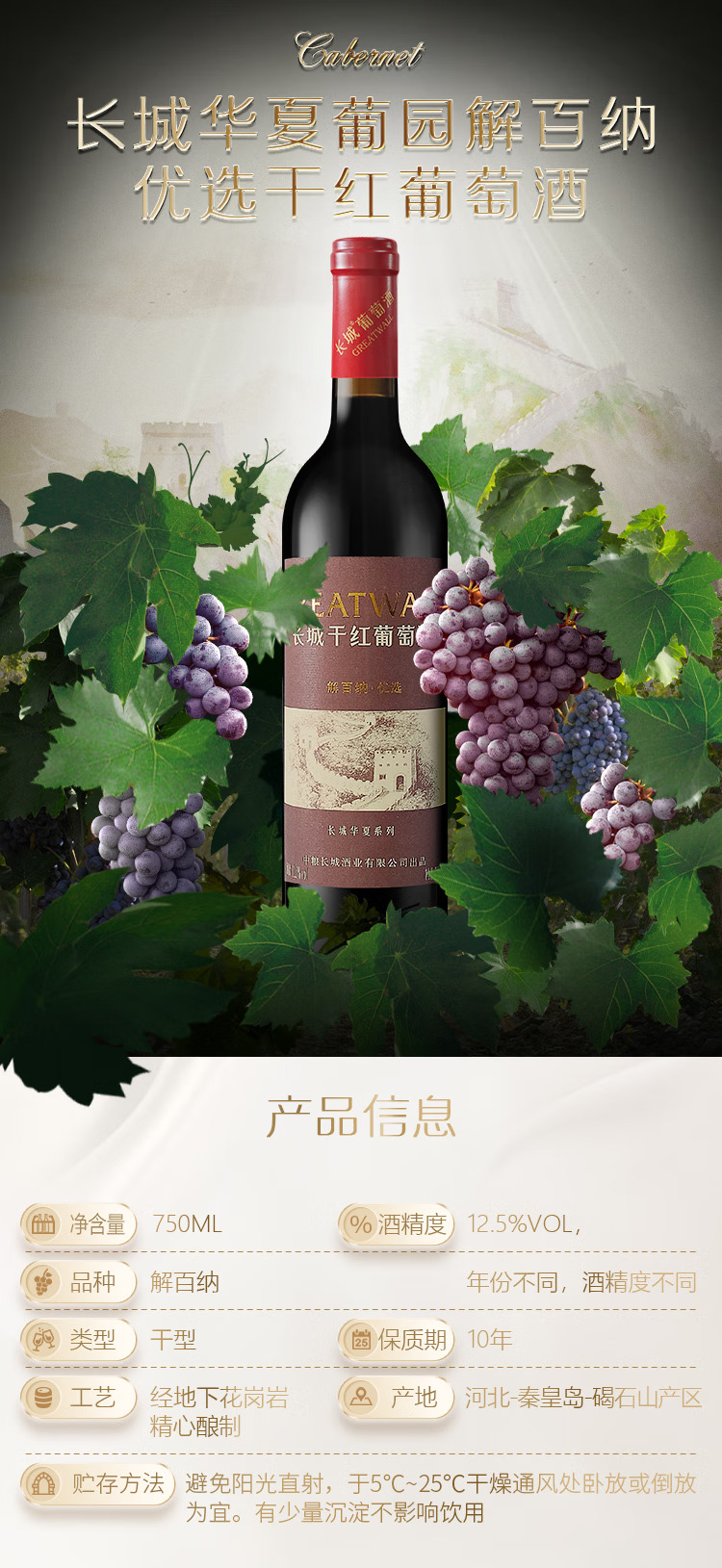 长城 华夏葡园 解百纳优选干红葡萄酒 750ml 单瓶装
