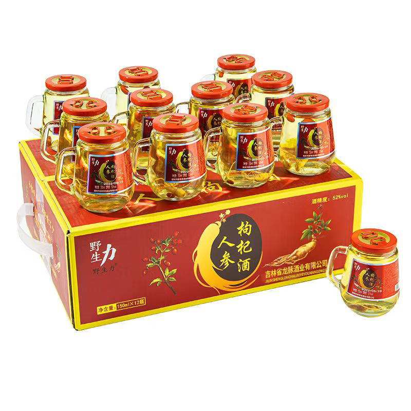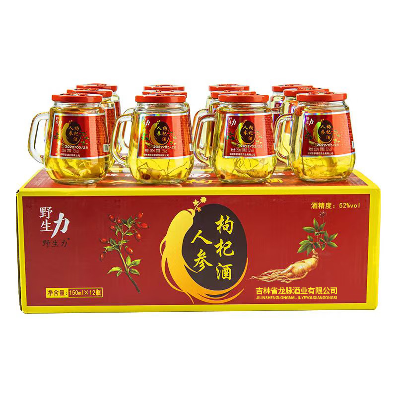 【长白山特产】人参枸杞酒大参礼盒装养生滋补酒 52度 150mL 12瓶 礼盒装【大参】