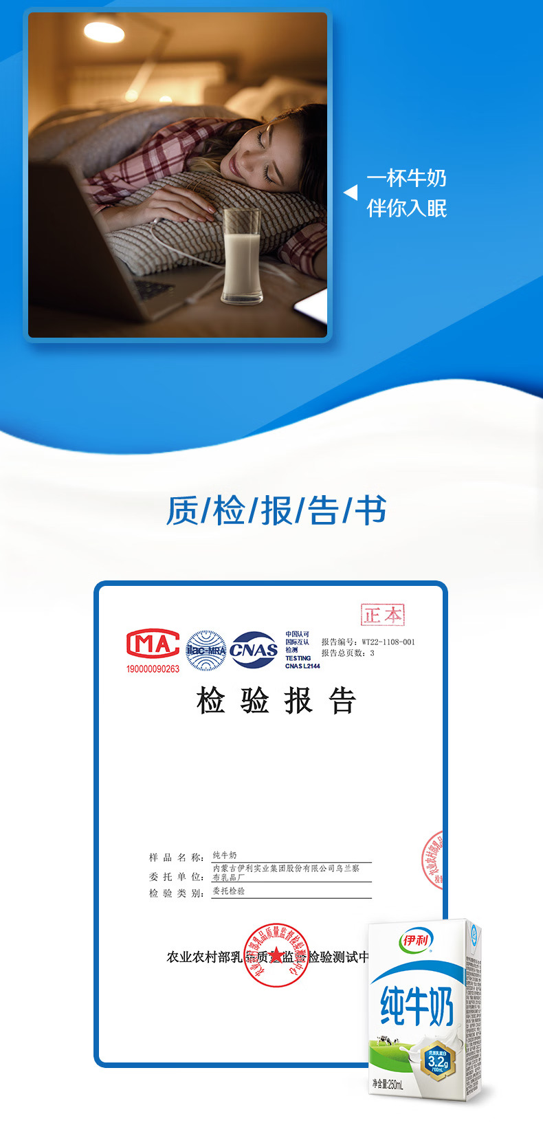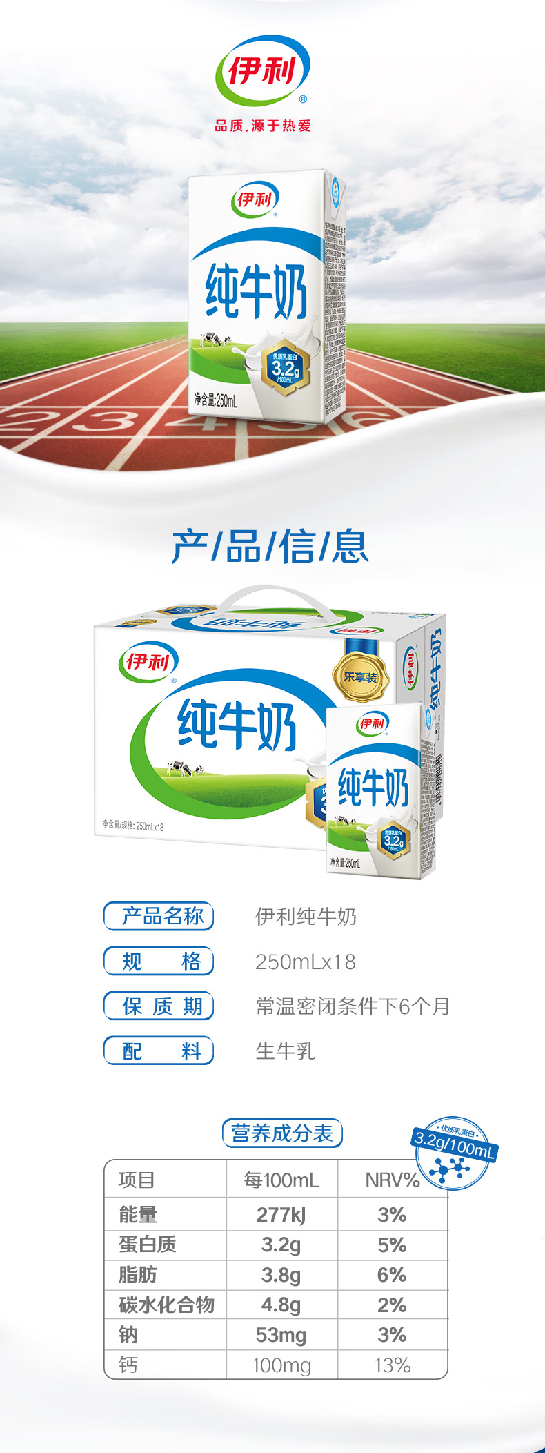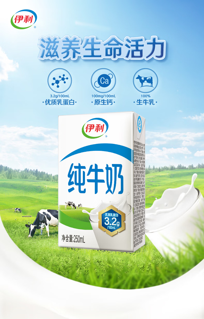 伊利全脂纯牛奶 250ml*18盒 礼盒装 每100ml含3.2g蛋白质 5月底产