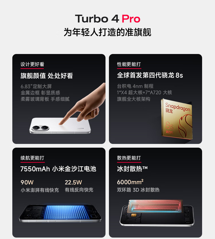 小米(MI)【国家补贴】REDMI Turbo 4 Pro 第四代骁龙8s 7550mAh长续航 12GB+256GB 黑色 小米红米5G手机