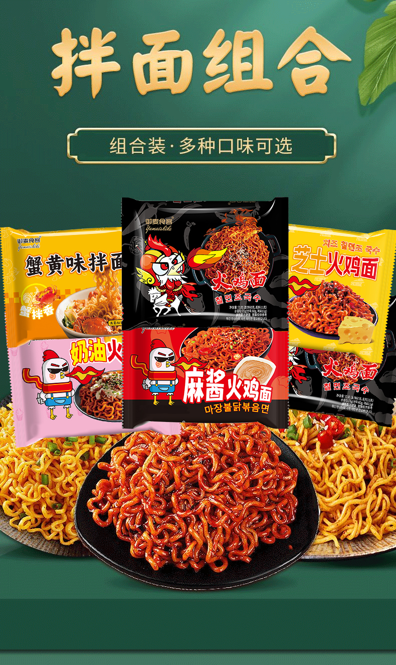 火鸡面混合口味泡面蟹黄83g芝士火鸡拌面批发整箱袋装方便面速食 5袋装【五种口味拌面】全家福图1