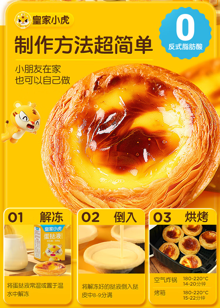 皇家小虎蛋挞30个套装蛋挞液组合1.6kg空气炸锅半成品带锡纸 源头直发