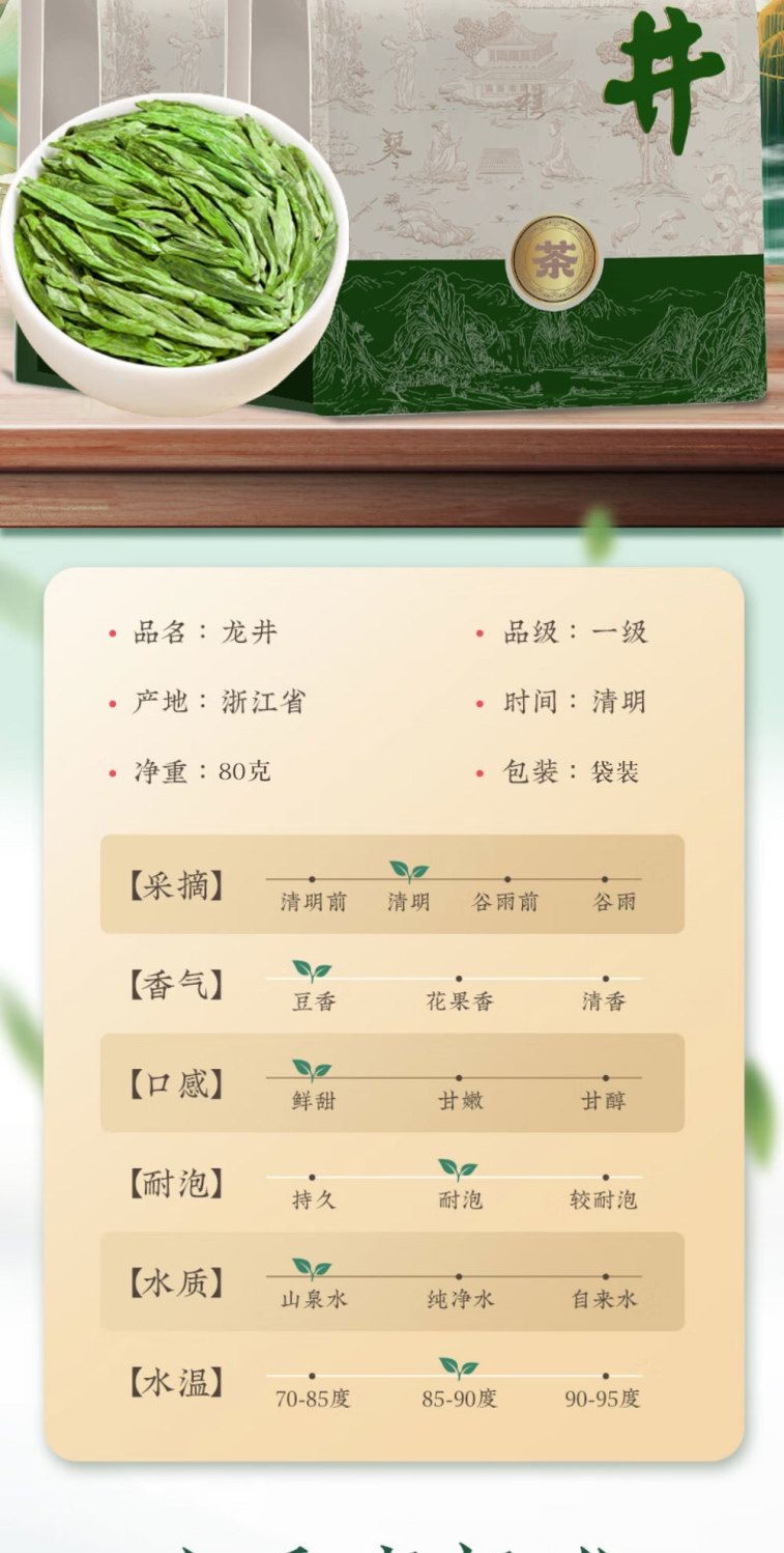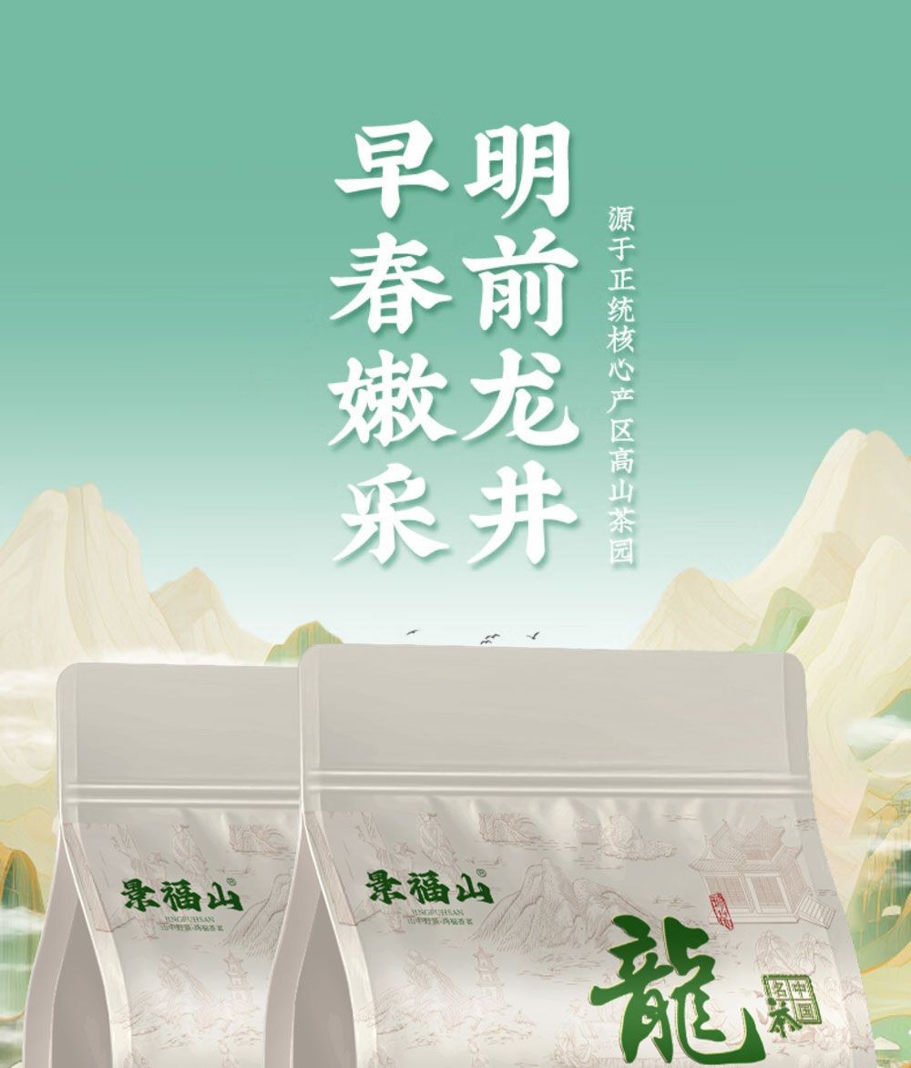 景福山 正品明前龙井茶豆香型绿茶2025年新茶叶嫩芽一级80克袋装
