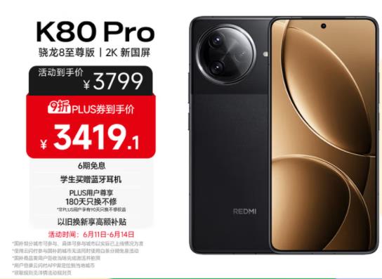 小米 REDMI K80 Pro 国家补贴 骁龙8至尊版 全焦段影像 澎湃OS 16GB+512GB 玄夜黑 红米5G手机图1