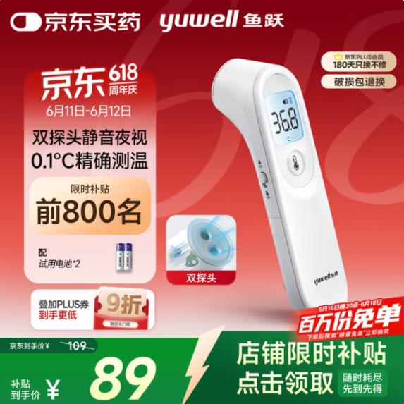 鱼跃(yuwell)医用电子体温额温枪温度计婴儿童老人体温计家用精准YT-1