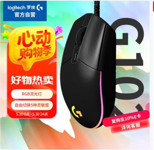 罗技(G)G102第二代游戏鼠标 RGB流光灯效鼠标 轻量化 游戏级8000DPI传感器 黑色 200-8000DPI