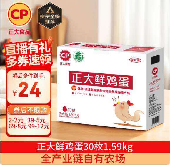 CP 正大 鲜鸡蛋 30枚 3.18斤 早餐食材 优质蛋白 礼盒装